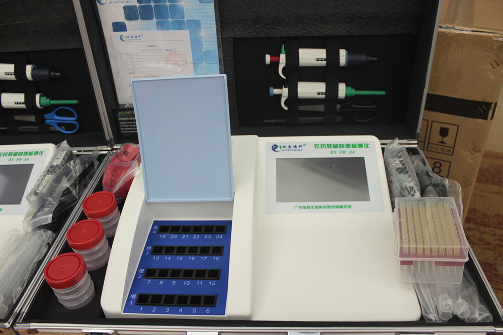 該檢測設備由“RS-PR-24農藥殘留快速檢測儀”、“食用農產品質量安全風險管理系統(tǒng)”兩部分組成,主要用于日常食用農產品檢測。該設備具有快速準確檢測農產品農藥殘留情況、實時上傳檢測數(shù)據等特點。