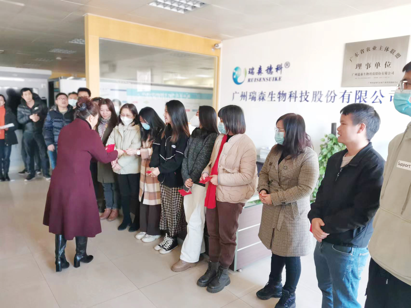 2023年1月28日(農(nóng)歷正月初七),瑞森集團(tuán)正式開工,總經(jīng)理張宣代表公司向員工派發(fā)新年開工紅包,祝愿公司新的一年業(yè)務(wù)蒸蒸日上!生意興隆!財(cái)源滾滾!大吉大利!錢“兔”無量?。?!