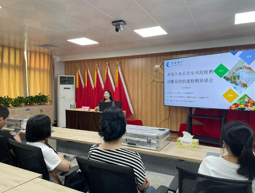 為確保2023年“南海區(qū)食品安全檢測大數(shù)據(jù)風(fēng)險分析系統(tǒng)保障食品安全工作”項目的順利開展,佛山市南海區(qū)市場監(jiān)督管理局委托廣州市瑞森生物科技股份有限公司會同南海區(qū)各鎮(zhèn)(街道)市場監(jiān)督管理所于2023年5月5日-19日期間為南海區(qū)全區(qū)各食品安全風(fēng)險監(jiān)測點人員開展食用農(nóng)產(chǎn)品農(nóng)藥殘留快速檢測培訓(xùn)工作。本次培訓(xùn)活動由南海區(qū)各鎮(zhèn)(街道)市場監(jiān)督管理所與瑞森生物公司共同組織開展。培訓(xùn)活動規(guī)模龐大,參加培訓(xùn)的人員為南海區(qū)全區(qū)各食品安全檢測大數(shù)據(jù)風(fēng)險分析系統(tǒng)保障食品安全工作項目風(fēng)險檢測點相關(guān)操作人員及負責人,培訓(xùn)對象包括了南海區(qū)全區(qū)7個鎮(zhèn)街954個自檢單位(含:農(nóng)貿(mào)市場,超市,配送企業(yè),酒店,餐飲店和學(xué)校,醫(yī)院,機關(guān)單位,敬老院等單位食堂)。