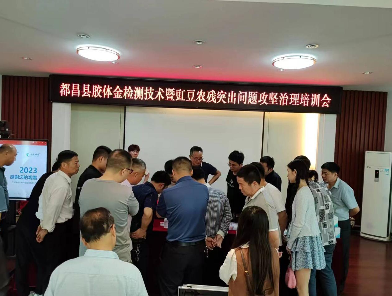為確保全縣農(nóng)產(chǎn)品質(zhì)量安全,針對豇豆農(nóng)殘突出問題進行攻堅治理,大力推進農(nóng)產(chǎn)品質(zhì)量安全監(jiān)管相關工作,江西省都昌縣農(nóng)產(chǎn)品質(zhì)量安全監(jiān)管站于2023年5月26日在縣農(nóng)業(yè)農(nóng)村局農(nóng)業(yè)大樓7樓會議室舉辦“2023年都昌縣膠體金檢測技術暨豇豆農(nóng)殘突出問題攻堅治理培訓會”。都昌縣各鄉(xiāng)鎮(zhèn)分管領導、各鄉(xiāng)鎮(zhèn)農(nóng)產(chǎn)品質(zhì)量安全專職監(jiān)管員及相關檢測站工作人員、廣州市瑞森生物科技股份有限公司相關領導及技術培訓同事參與了此次會議。