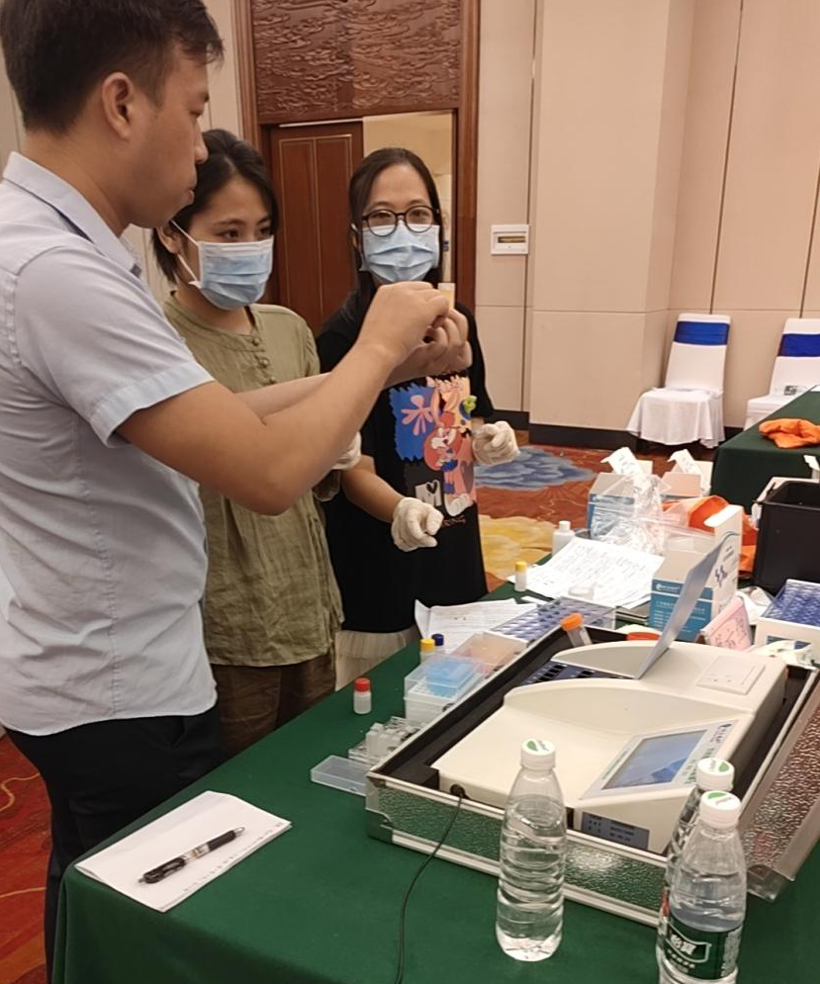 另外,在快檢實(shí)操培訓(xùn)課上,瑞森生物技術(shù)培訓(xùn)同事通過(guò)現(xiàn)場(chǎng)實(shí)操檢測(cè)食用農(nóng)產(chǎn)品的方式,讓參會(huì)人員親眼目睹并體驗(yàn)了整個(gè)食用農(nóng)產(chǎn)品快速檢測(cè)操作的過(guò)程,并系統(tǒng)的講解了農(nóng)產(chǎn)品膠體檢測(cè)操作流程的有關(guān)技術(shù)要點(diǎn),以及詳細(xì)介紹了儀器設(shè)備的使用方法和工作原理、日常維護(hù)管理等相關(guān)方面的注意事項(xiàng),同時(shí)講解了試劑和耗材的使用規(guī)范、儲(chǔ)存管理、日常維護(hù)等內(nèi)容。為參會(huì)人員提供了一場(chǎng)全面、細(xì)致、豐富的理論與實(shí)踐相結(jié)合的培訓(xùn)指導(dǎo)課程,以此幫助參會(huì)人員快速提升食品安全專業(yè)知識(shí)水平以及加強(qiáng)快檢技能的動(dòng)手能力,使快檢工作人員能夠更好的適應(yīng)相關(guān)崗位的工作要求。
