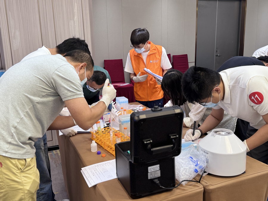 下午,培訓(xùn)進(jìn)入實操考核與競賽評比階段。根據(jù)上午所學(xué)內(nèi)容,參訓(xùn)學(xué)員在多個操作臺上獨立完成樣品前處理、檢測步驟規(guī)范執(zhí)行、數(shù)據(jù)讀取與結(jié)果記錄等快檢流程??己藘?nèi)容涵蓋操作規(guī)范性、結(jié)果準(zhǔn)確性以及對異常情況的判斷與處理能力,全面檢驗學(xué)員的實操水平和應(yīng)變能力。